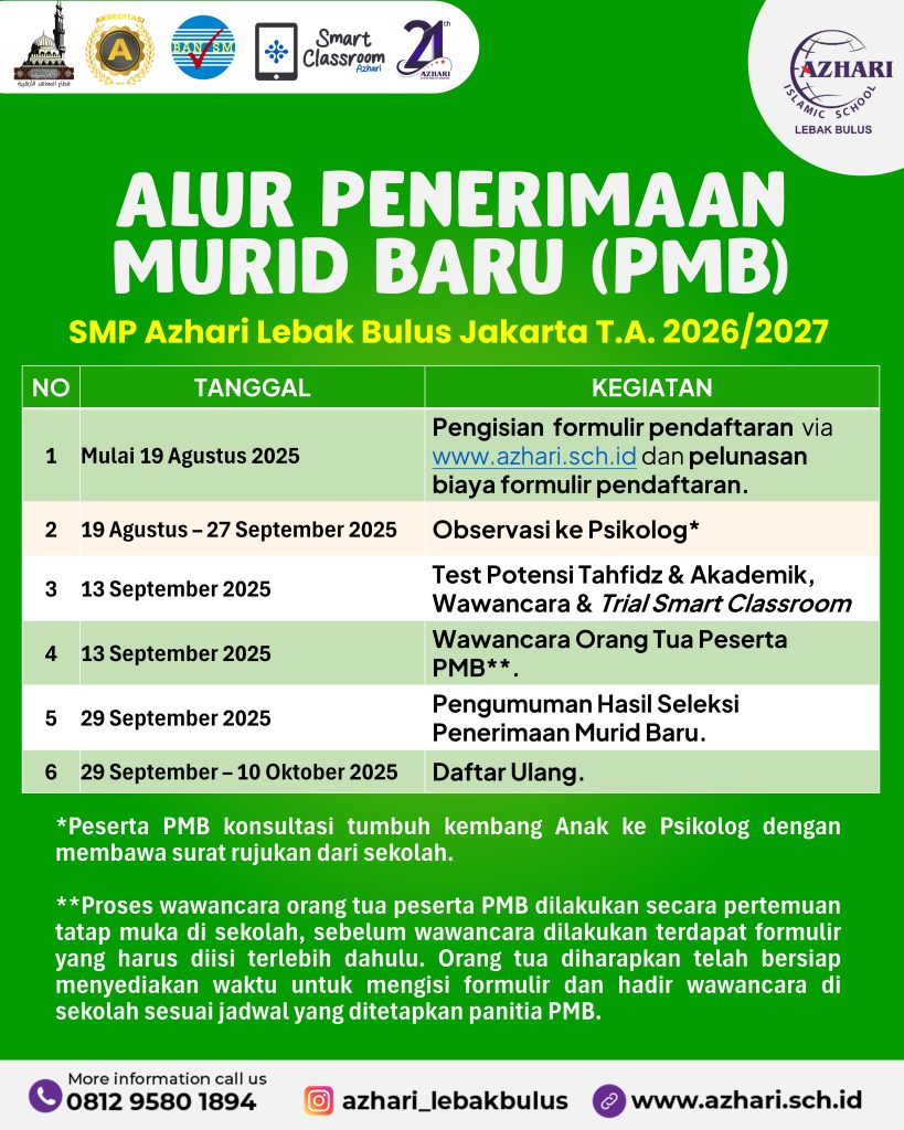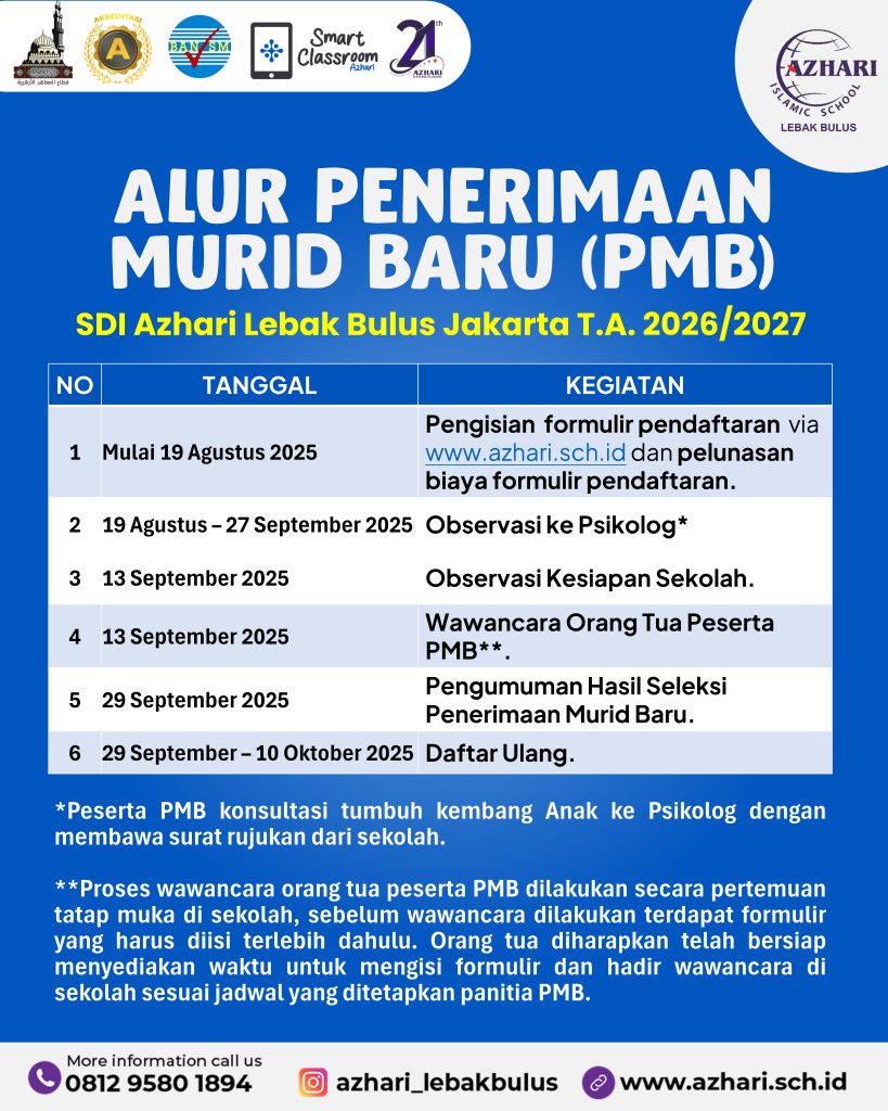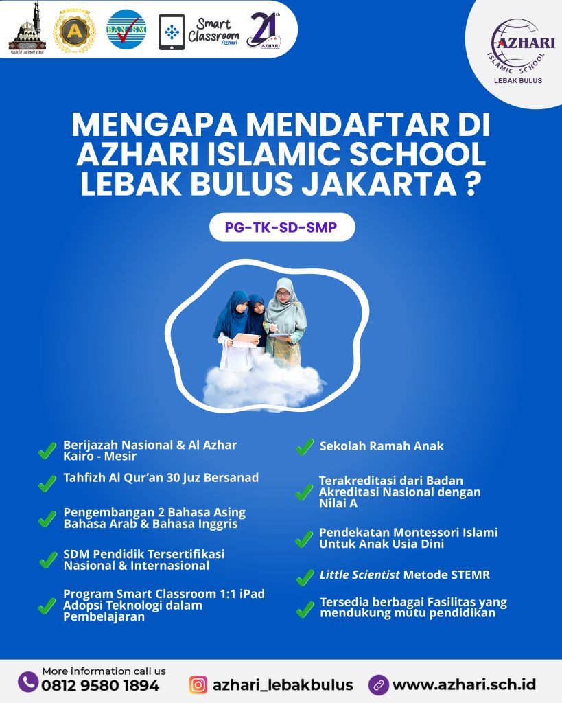 Azhari Islamic School adalah sekolah cabang Al Azhar Cairo di Indonesia dengan misi menghasilkan siswa beraqidah tangguh sesuai Qur’an dan sunnah, berwawasan luas, berakhlak mulia, cakap, kreatif, mandiri dan berprestasi; menyelenggarakan dan menerapkan kurikulum inti lembaga pendidikan Al-Azhar, Cairo; dan mengintegrasikan dasar-dasar Ilmu pengetahuan Agama dan Umum secara utuh. Sekolah Pertama di Indonesia konsep Full Day School yang memiliki program Tahfizh Al Qur’an 30 Juz.